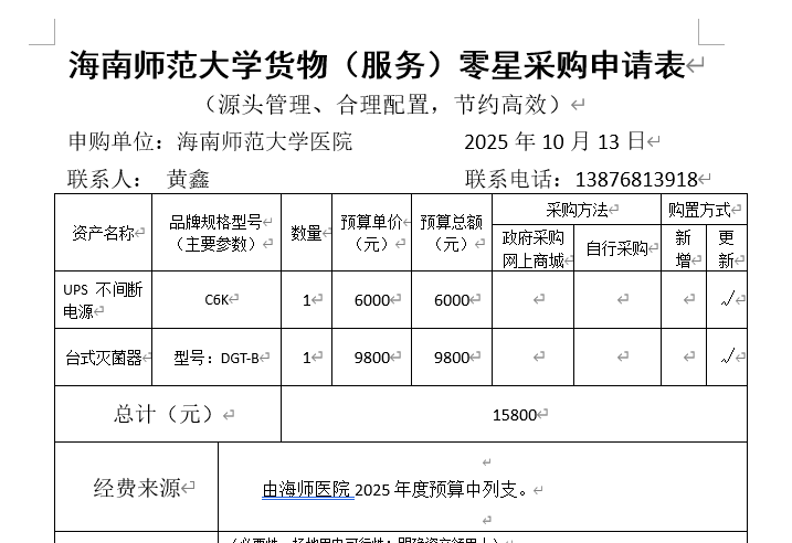 校医院台式灭菌器及不间断电源采购公告