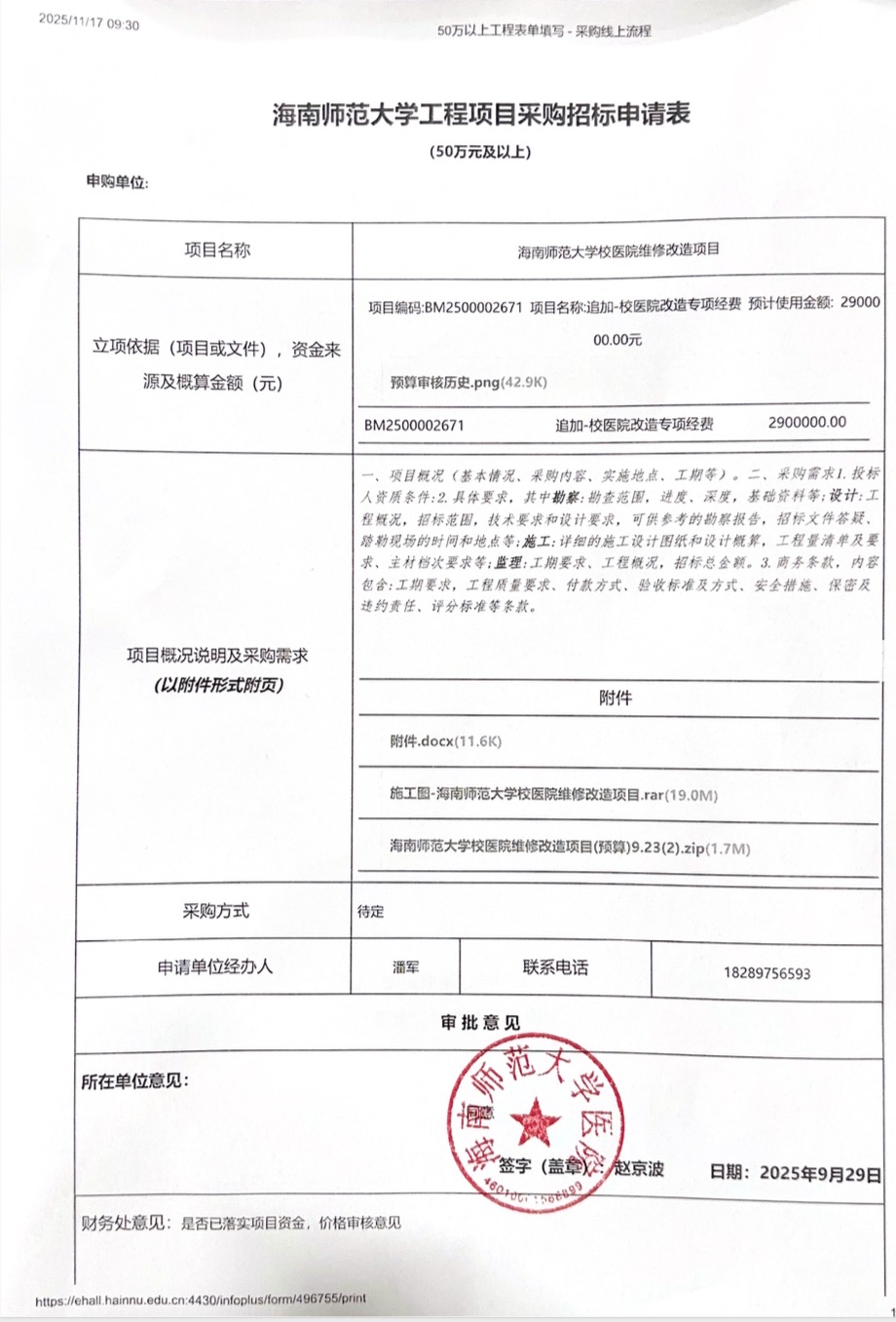 为改善我校龙昆南校医院医疗条件,消除安全隐患,提升师生就医体验,需实施校医院维修改造项目。根据学校采购流程,现进行采购公示。如需咨询相关事宜,请致电:13876813918 黄老师。